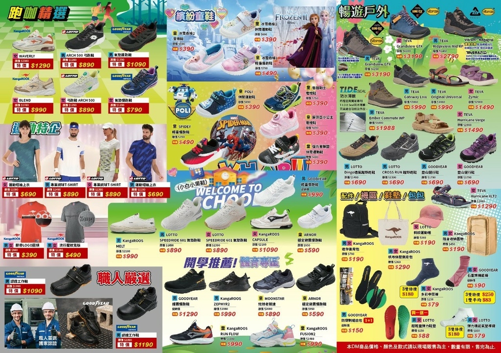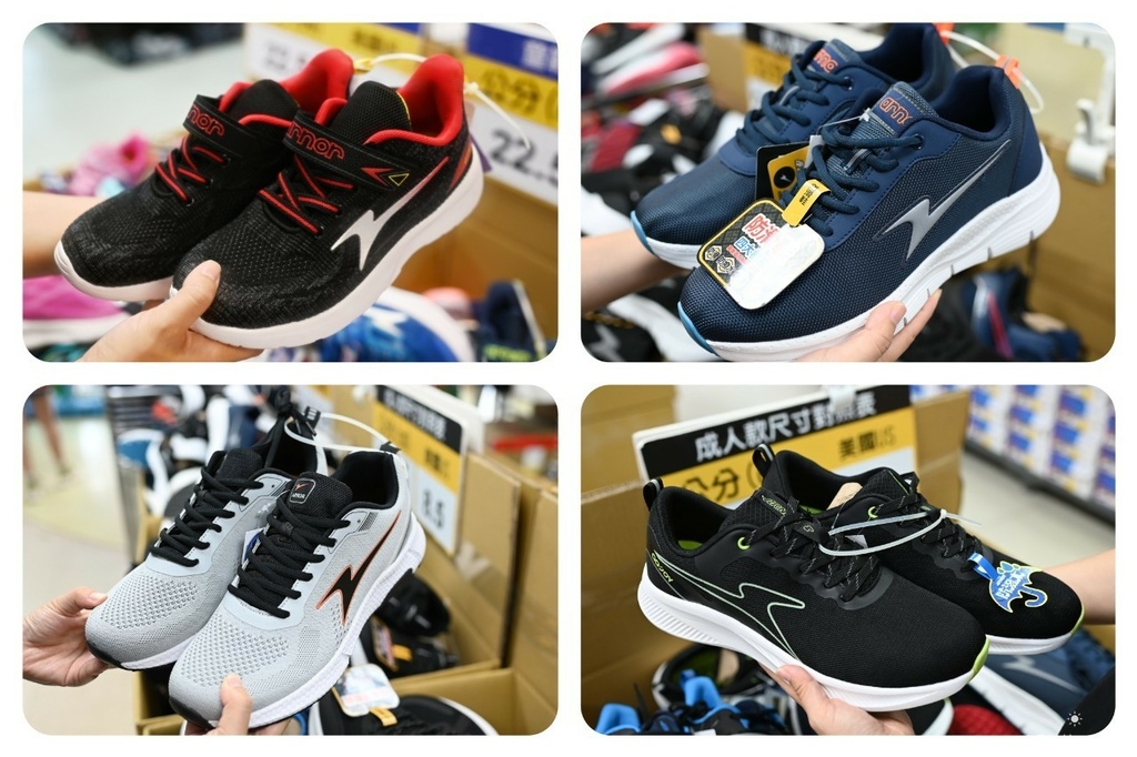 包含籃球、網羽球、登山、跑鞋、健走鞋、溯溪鞋、洞洞鞋等運動配飾,提供各年齡層CP值超高的運動用品