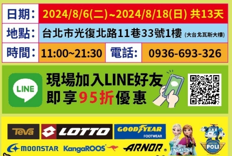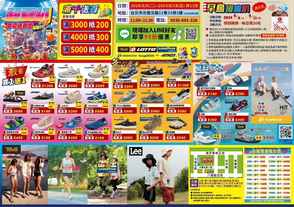 就在大台北瓦斯大樓夏趴特賣會!!MOONSTAR、LOTTO、TEVA、GOODYEAR、ARONR、KangaROOS、人氣卡通鞋、LEE等品牌重裝上陣!