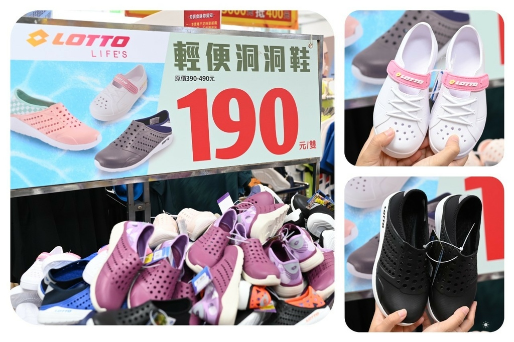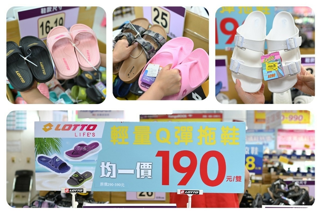 ▲LOTO也有出輕量Q彈拖鞋,從兒童到大人到老人各種尺寸都有,不管大小雙通通190!!