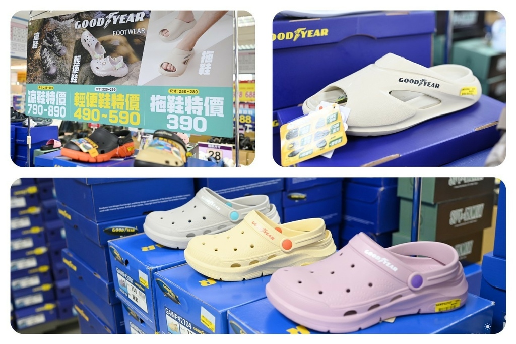 ▲固特異的涼鞋、拖鞋也是熱賣款喔!不光是上班族,連大學生都很喜愛他們家的顏色及款式,許多大學生還會搭配襪子,更顯得青春氣息~~(啊~我是回不去了)