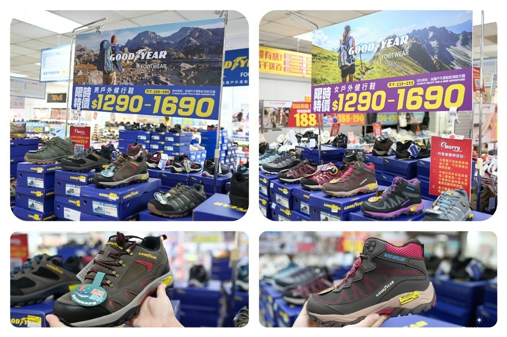 GOODYEAR美國戶外鞋,約2012年進來台灣,旗下商品包含登山鞋、健走鞋、慢跑鞋、休閒鞋、涼拖鞋等,也有適合孩子的童鞋、童涼鞋